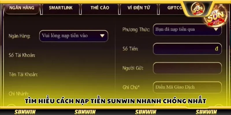 Hướng dẫn nạp tiền Sunwin thành công 100%